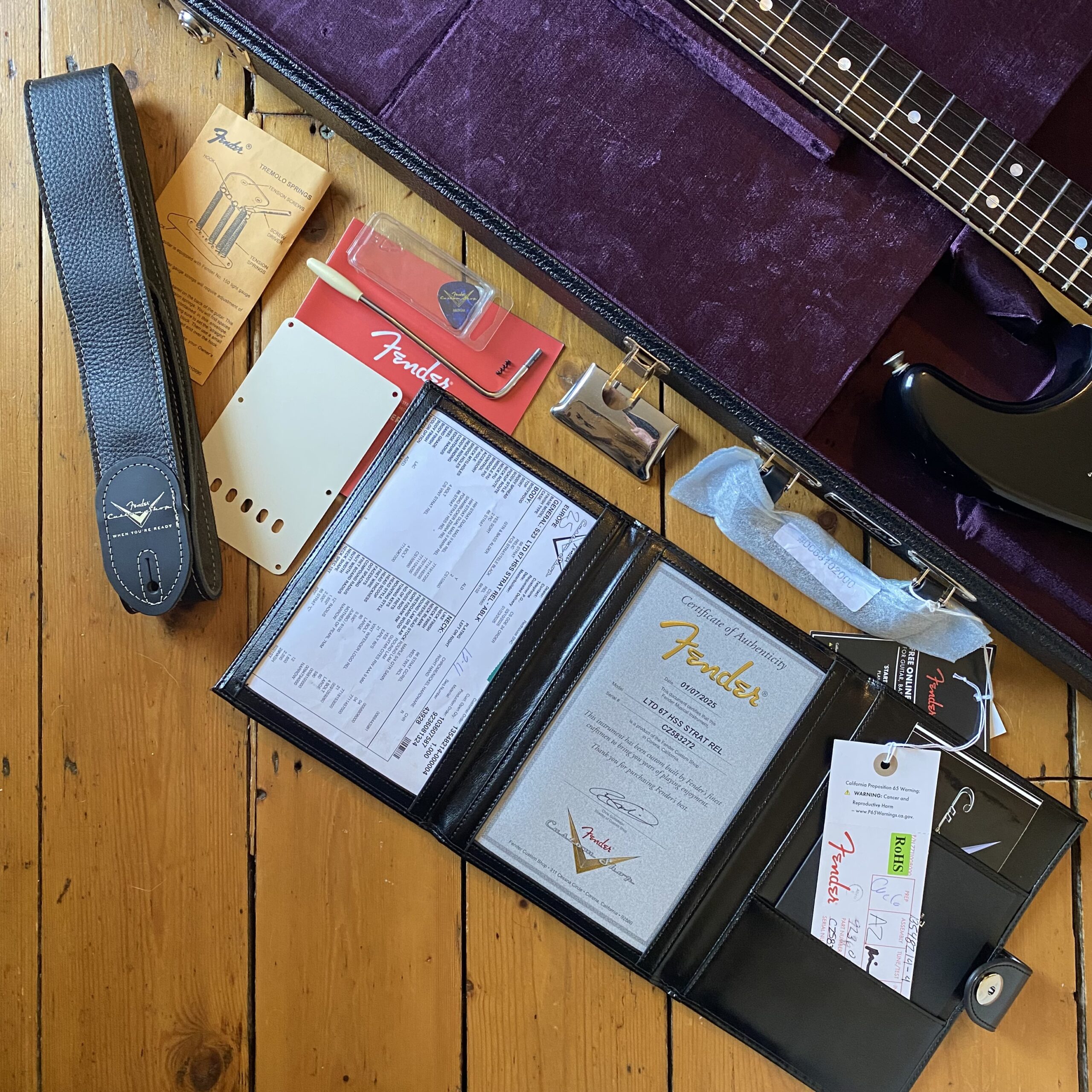 Leather case with Custom Shop certificate & floor traveller