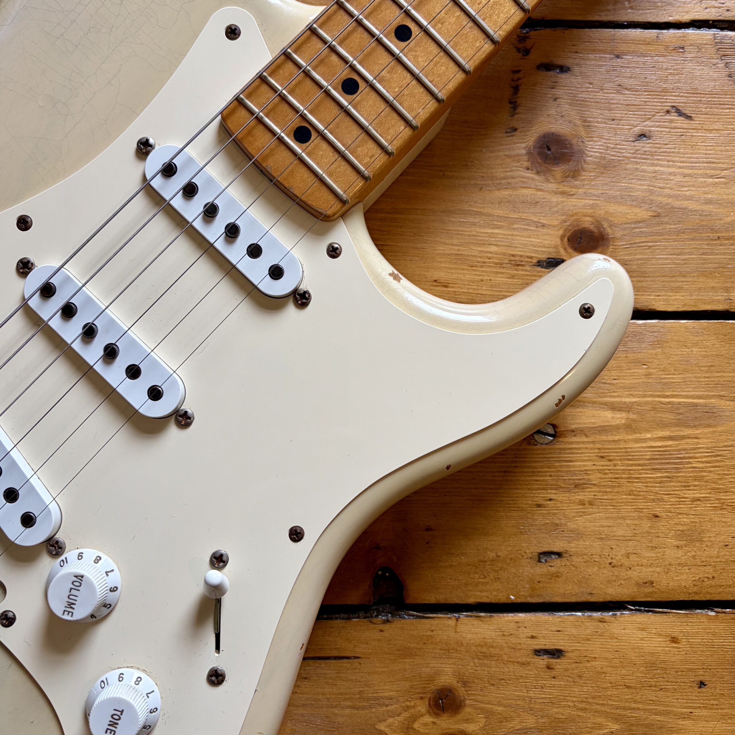 This particular guitar is no exception and really feels and sounds like an original ’56. The Relic finish isn’t too over the top (as some can be) with great attention to detail. This particular guitar has the sought after one piece Ash body and is incredibly light and resonant thanks to its 6.75lb weight! with 1956 being a transitional year between Ash and the now infamous Alder bodies. One of the lightest Strats we’ve ever had in.
