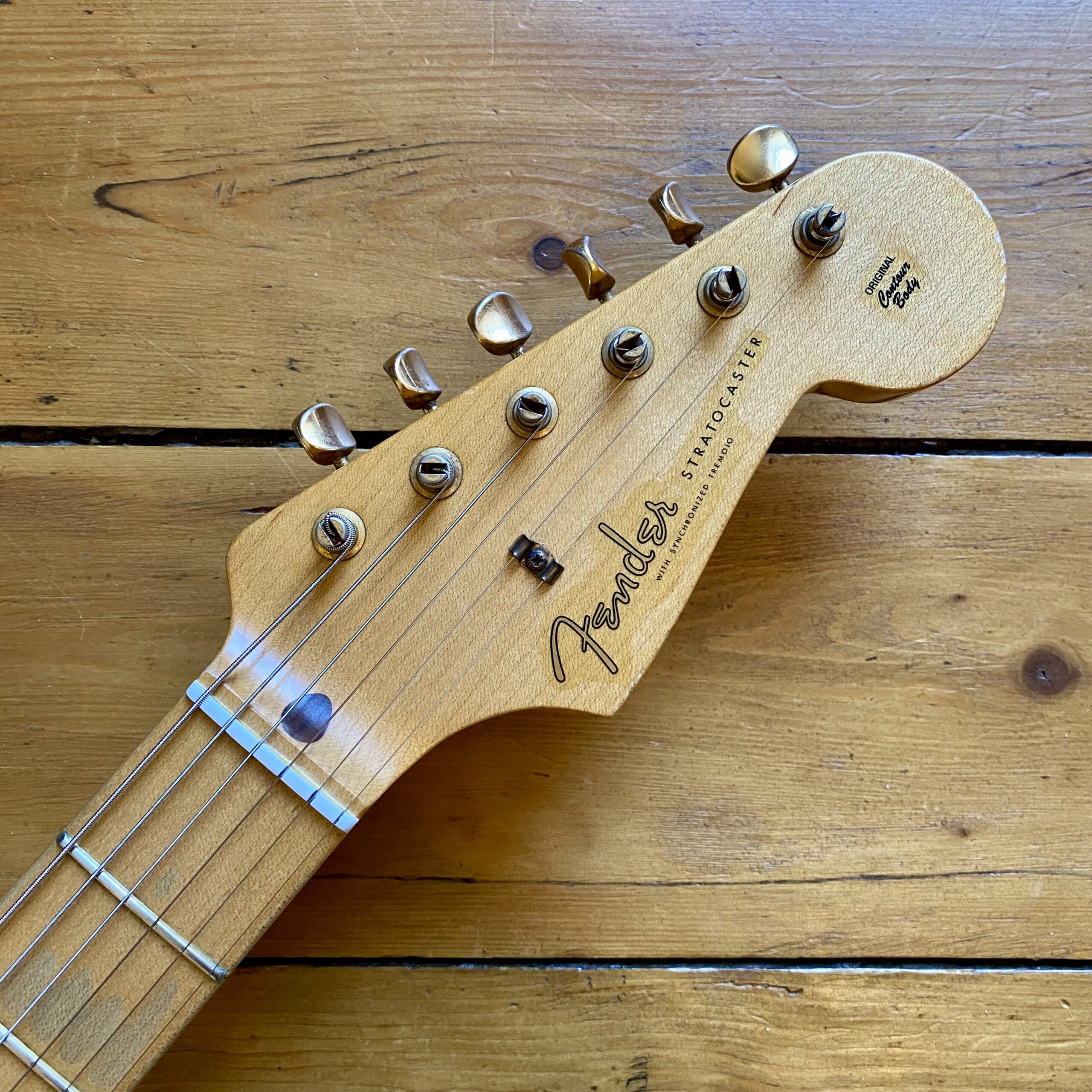The patina is really well executed and is nice and lightweight at 7.4lbs. Its ’56 contoured ash body and maple neck have that lovely “played in” feel and that signature Strat chime we’ve heard on countless records, effortlessly covering all genres. The 56 “V” neck profile is super comfortable and very easy to play. The guitar is very resonant and has fantastic response across the board thanks to the excellent tonewood combination and hand-wound Fat 50’s pickups. A real delight to play as you would expect.