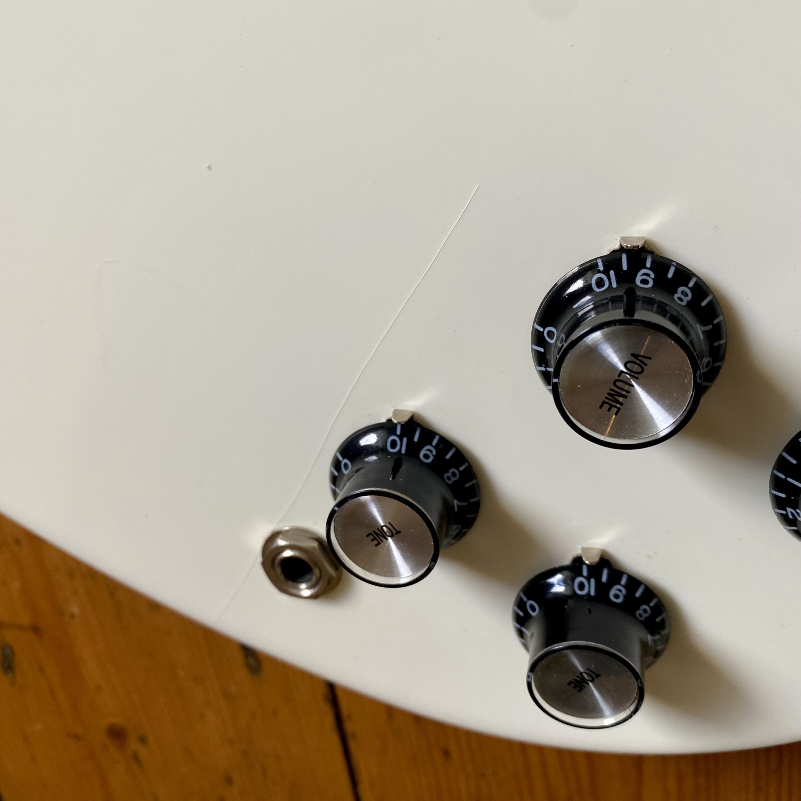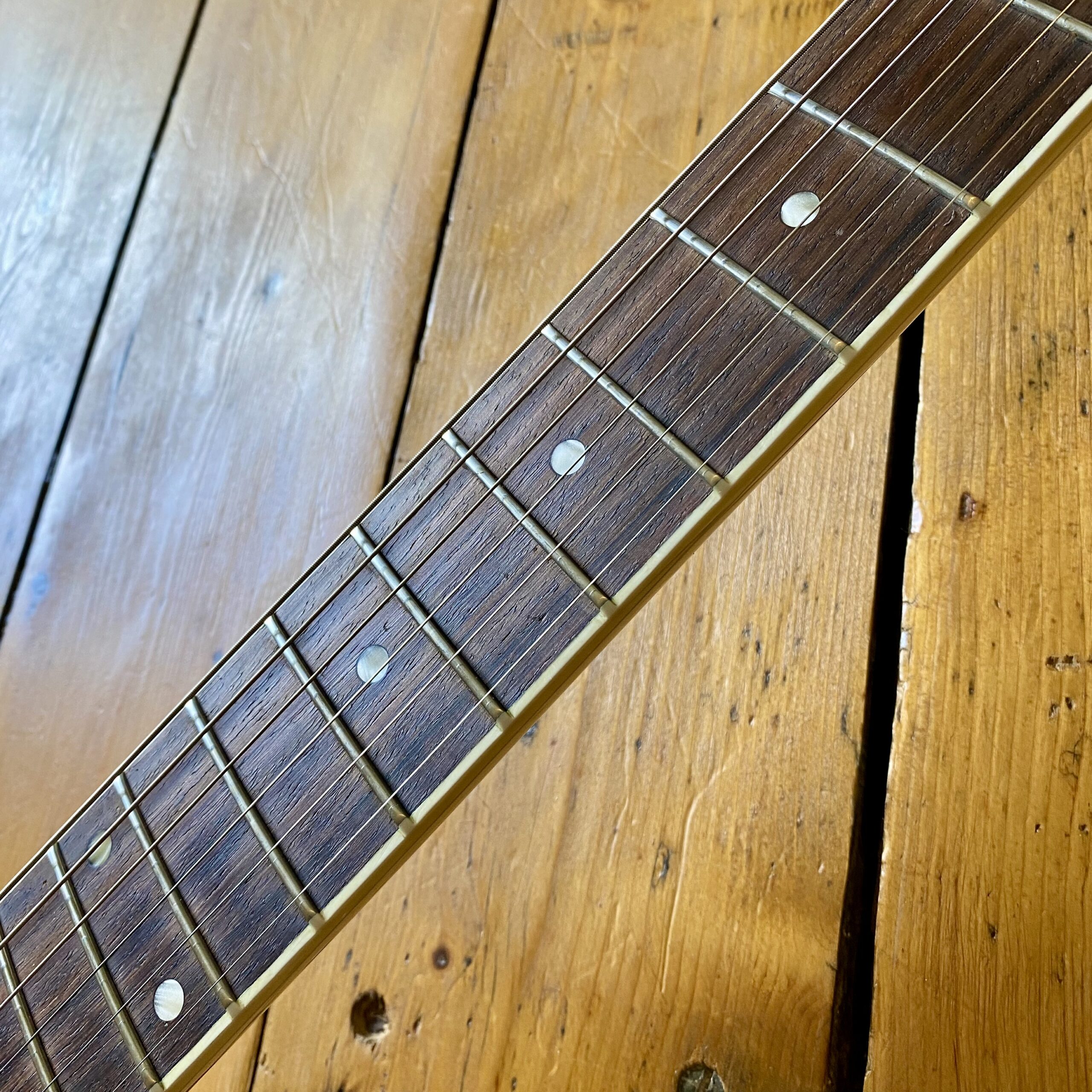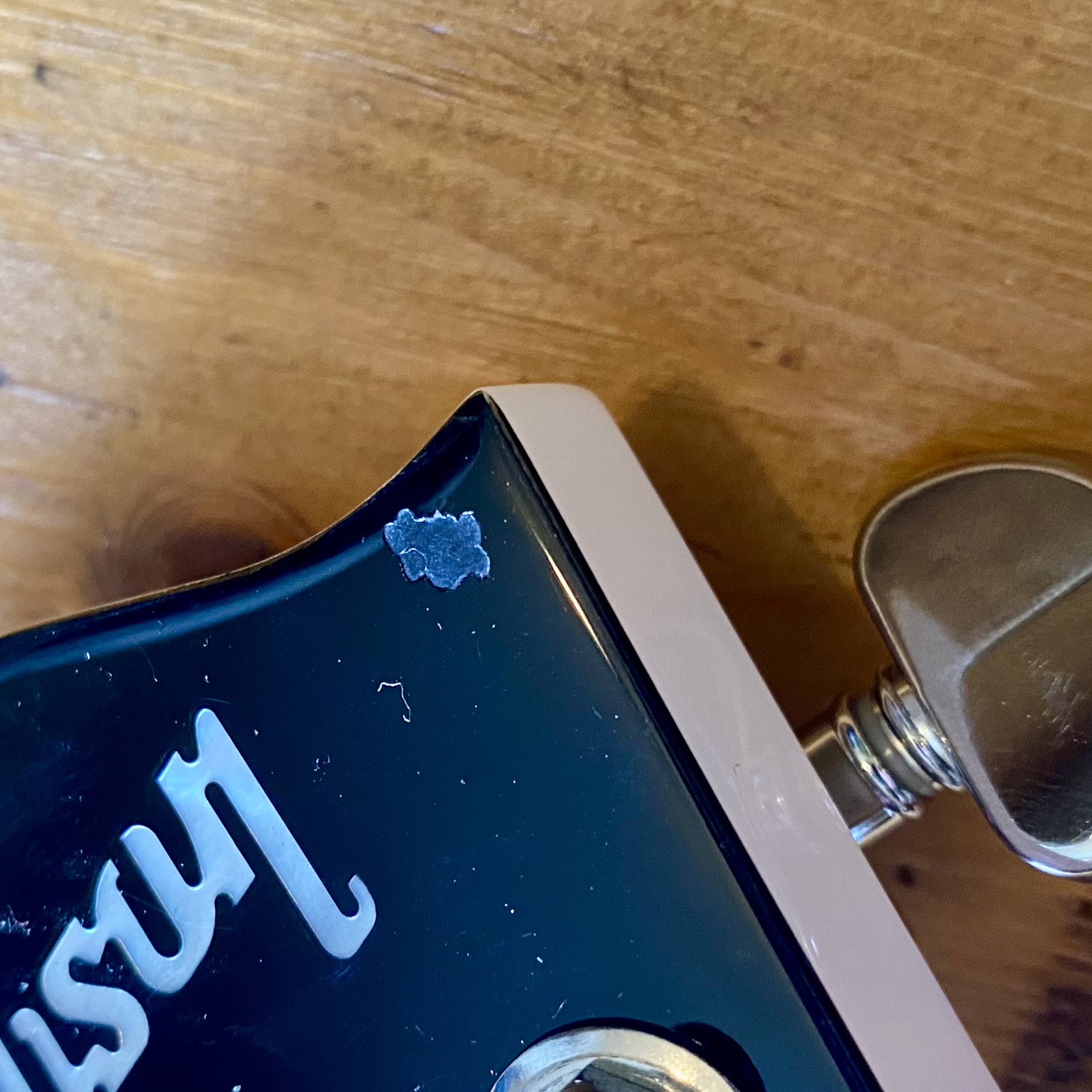 The guitar is in excellent condition throughout and looks to have lived most of its life in its case. The only issues to report are a small line of “normal” checking near the control knobs and an area of discolouration at the back of the neck, likely some colour transfer/bleed from the case and a small blemish to the headstock fascia. The frets are in excellent shape and the only blemishes are a couple of small areas of discolouration (see images).