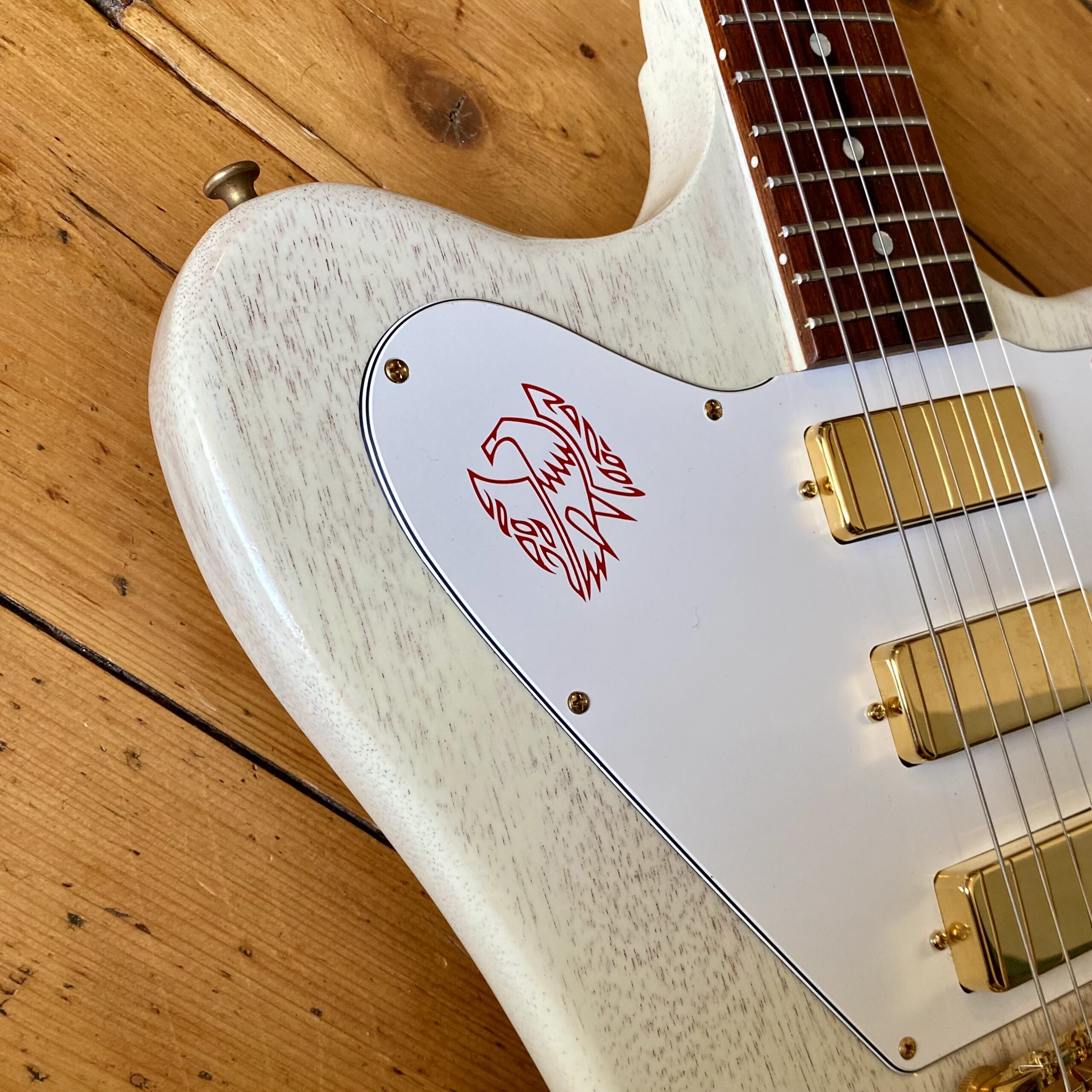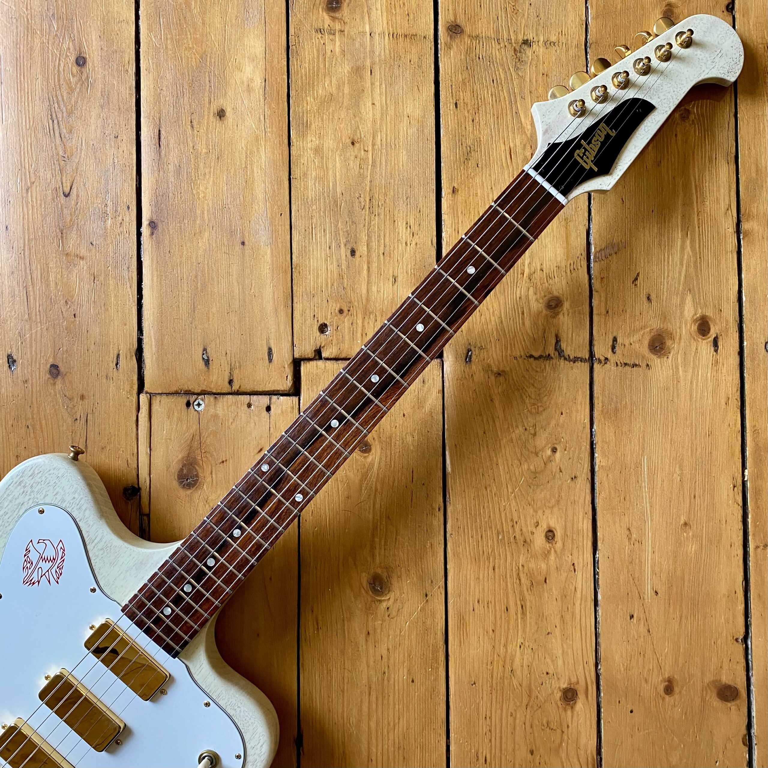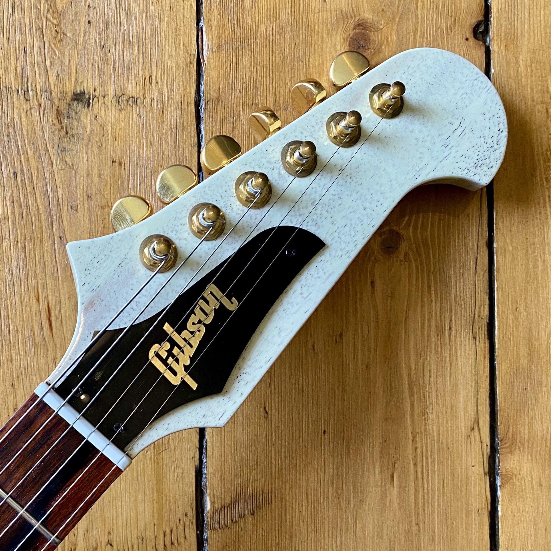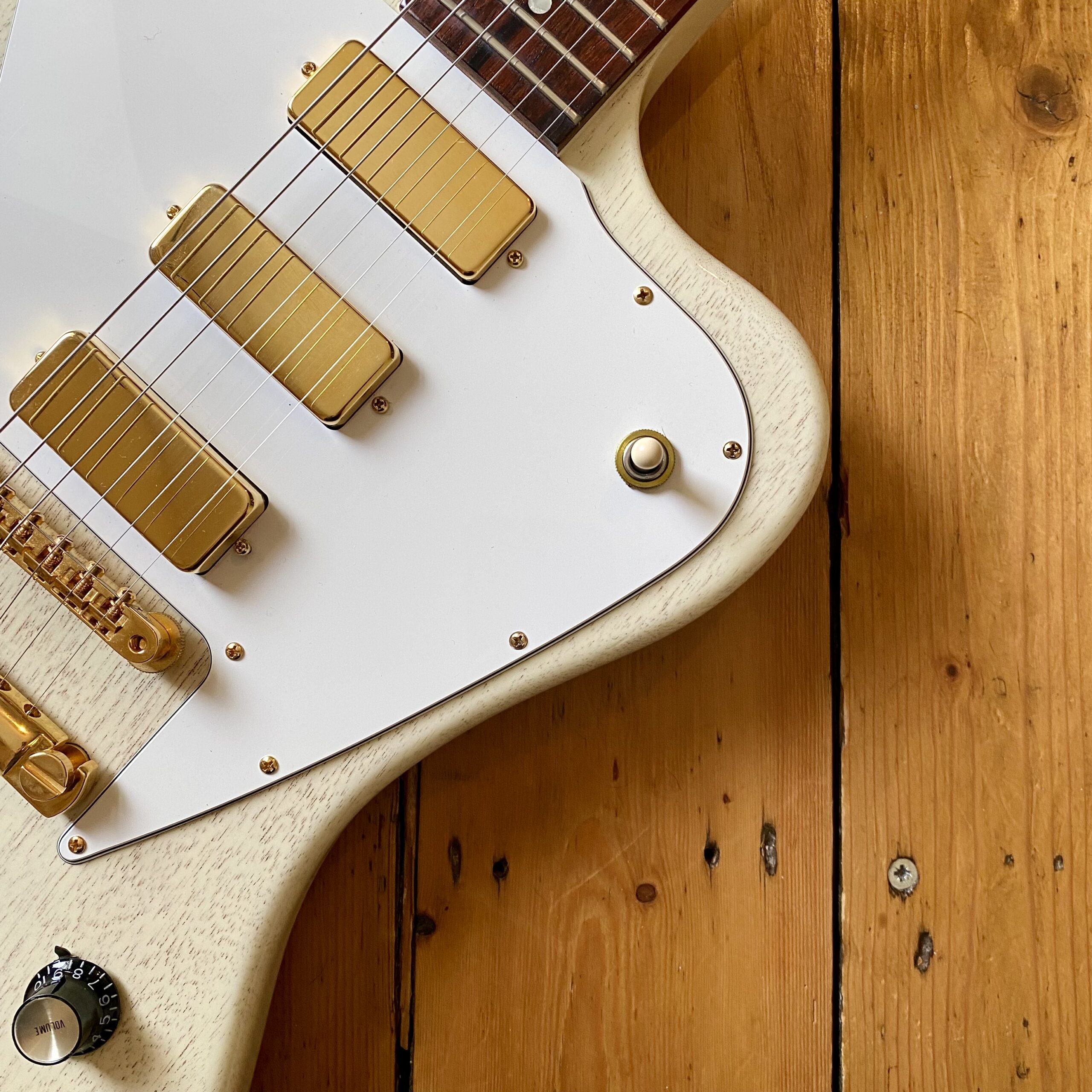 The Gibson Custom Shop Non Reverse Firebird VII is a rare special order from 2007 that combines vintage looks and feel with modern craftsmanship. The TV White finish looks absolutely sublime paired with the gold hardware and really does have a unique look.