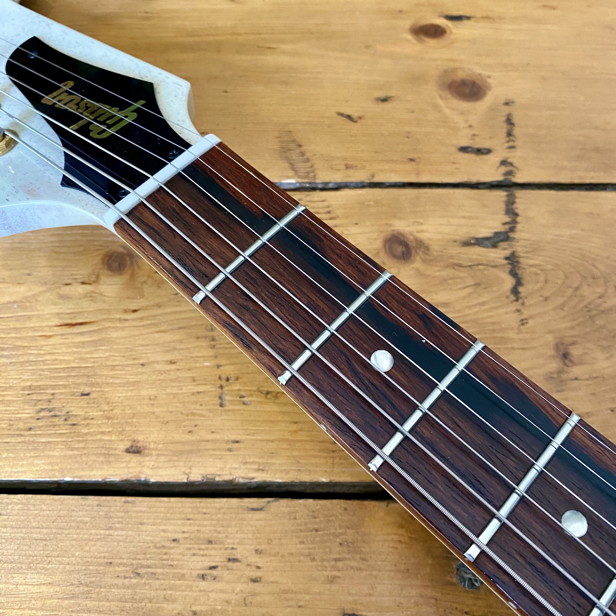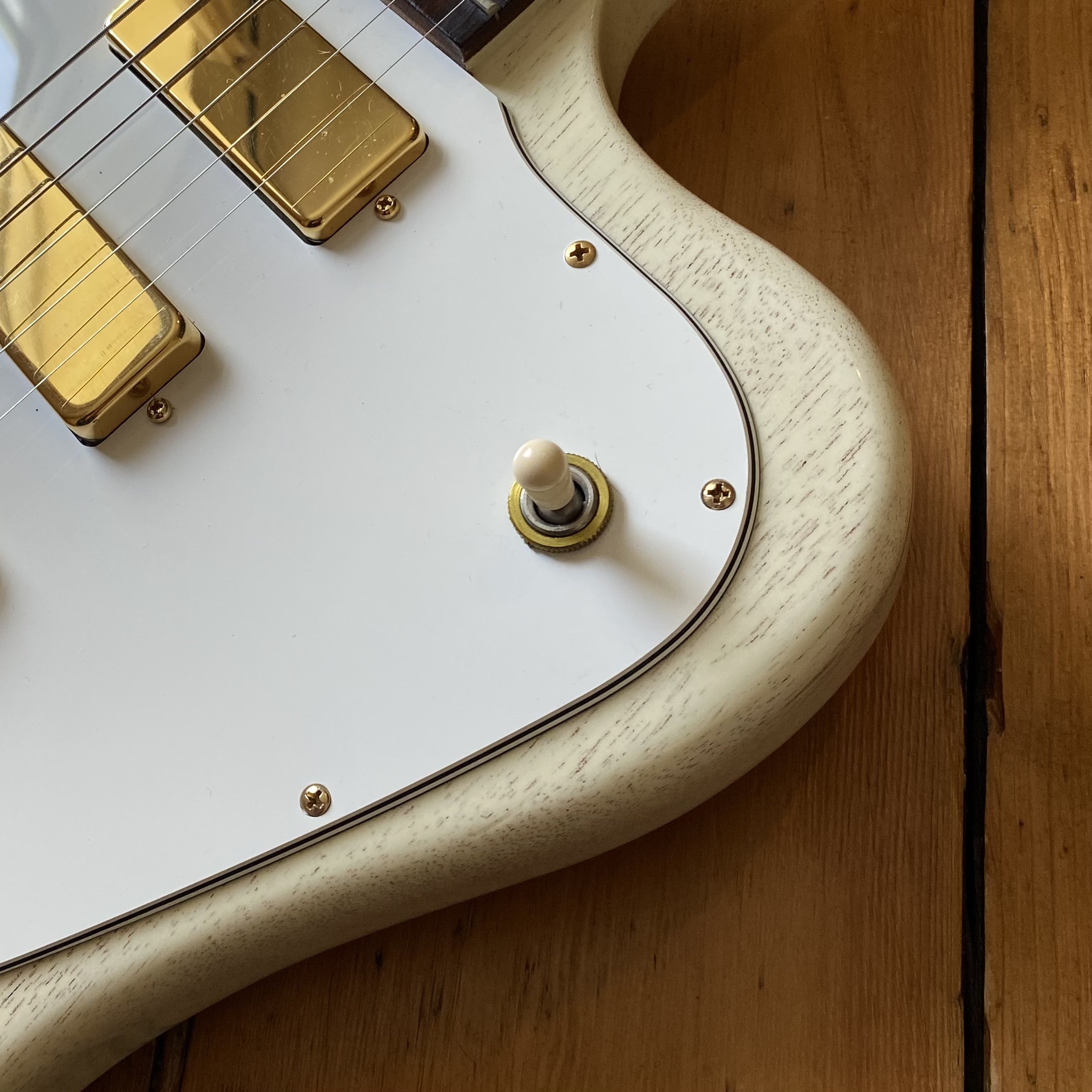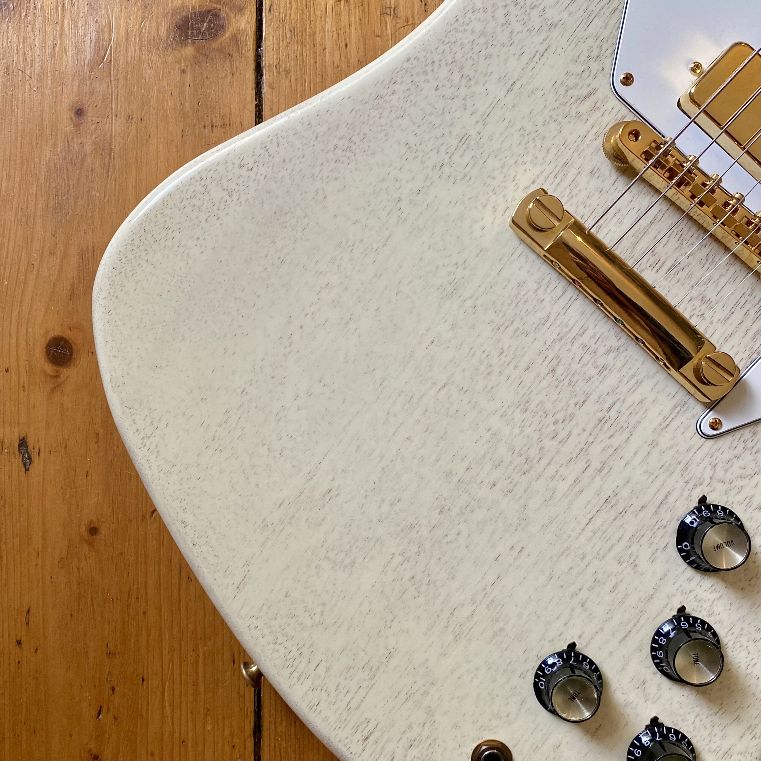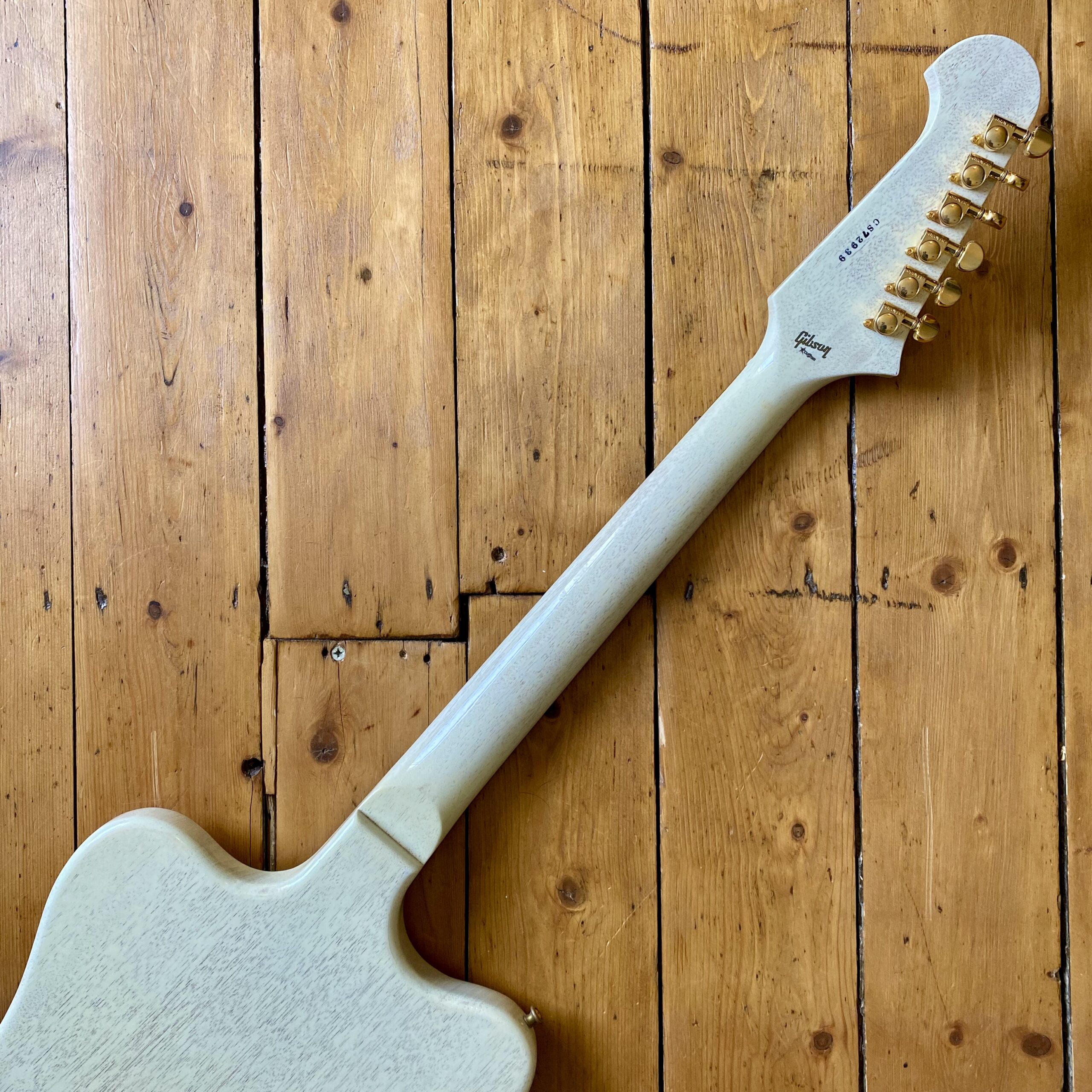 The Gibson Custom Shop Non Reverse Firebird VII is a rare special order from 2007 that combines vintage looks and feel with modern craftsmanship. The TV White finish looks absolutely sublime paired with the gold hardware and really does have a unique look.