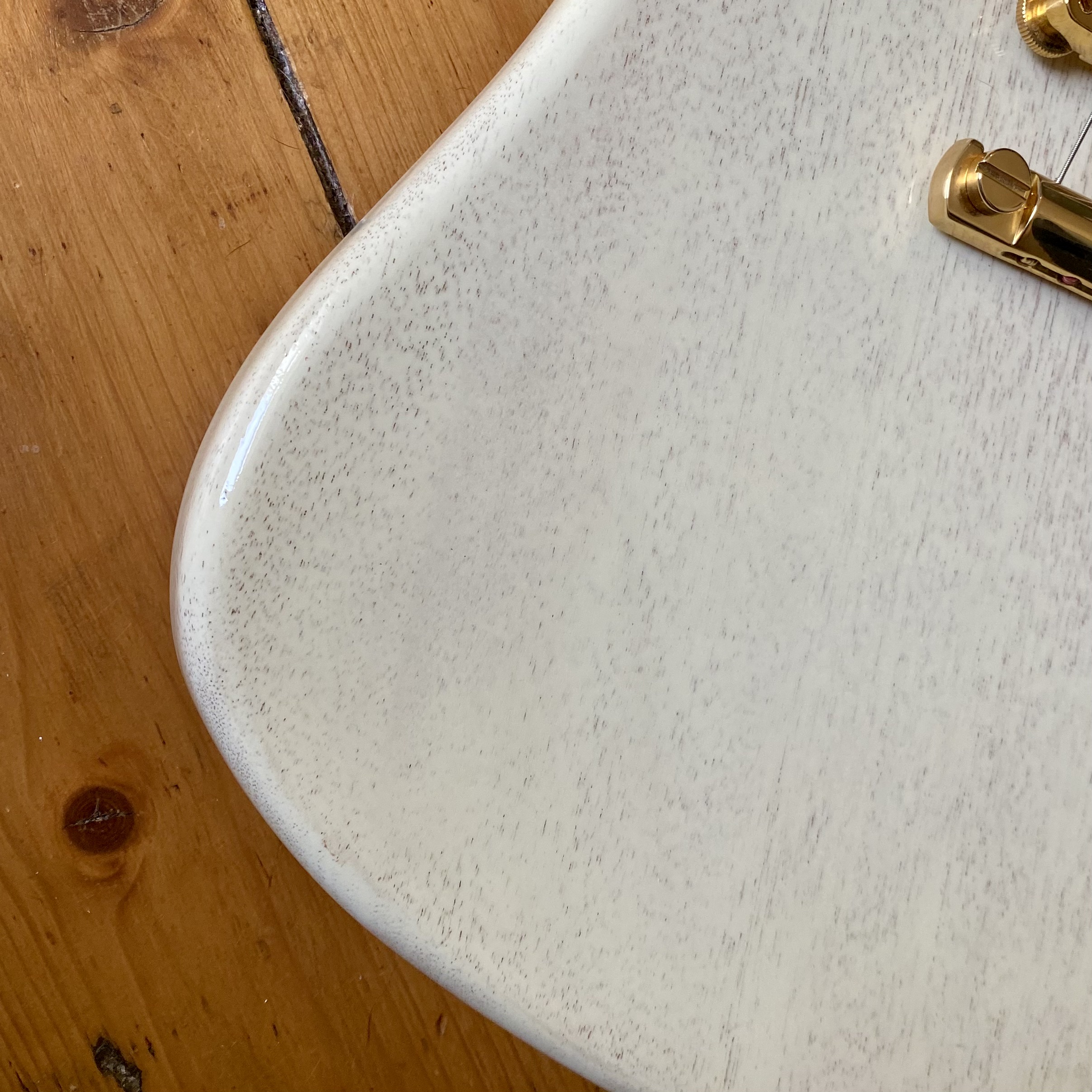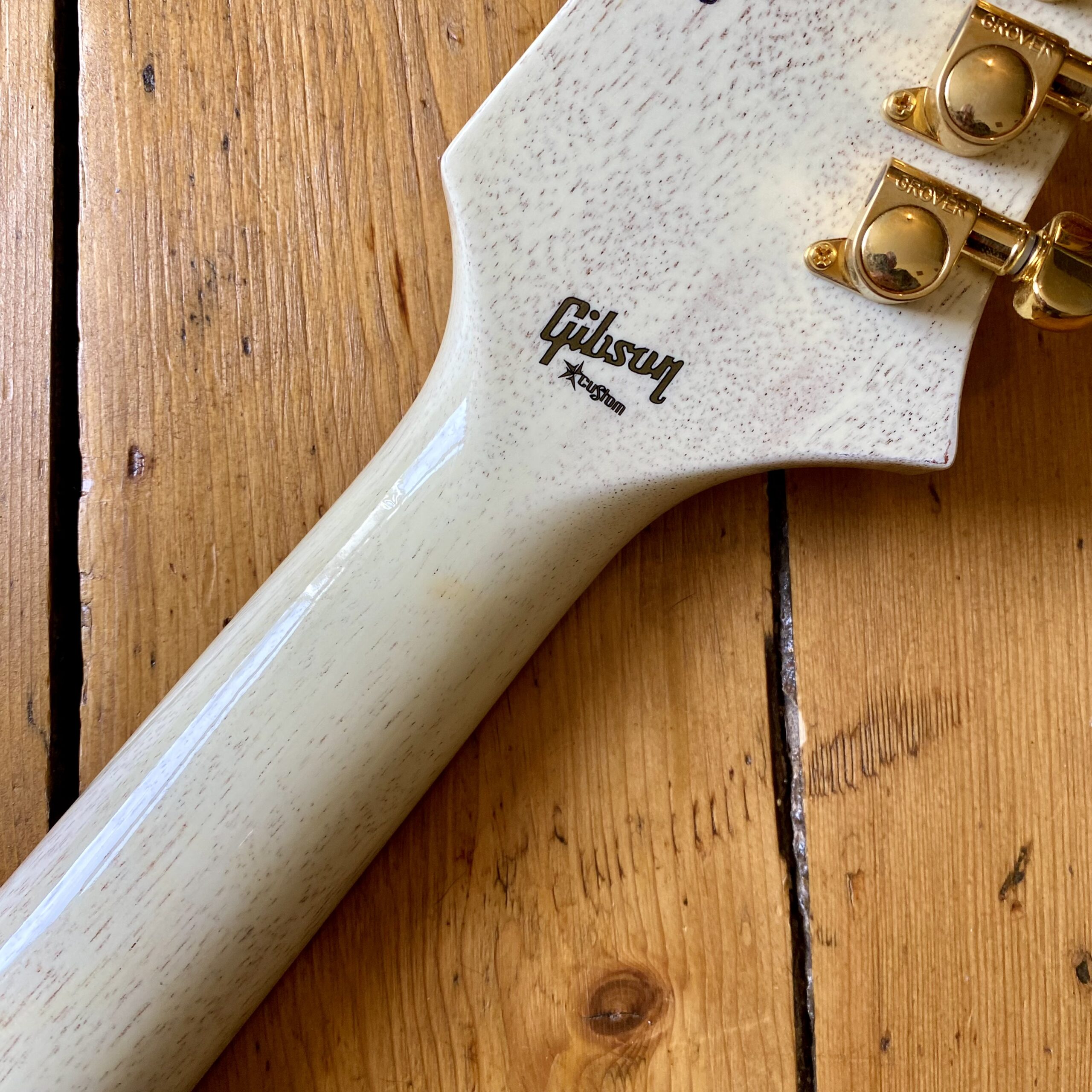 This particular example was purchased and put away by a collector, sitting under the bed since it was imported from the USA in 2007. The only thing worth noting is some colour bleed/migration from the Gibson Custom hardcase. This is completely normal with White Nitro finishes and does not detract from the guitar. Aside from this the guitar is as it left the Gibson Custom Shop. The frets are in perfect shape, along with the rest of the guitar.
