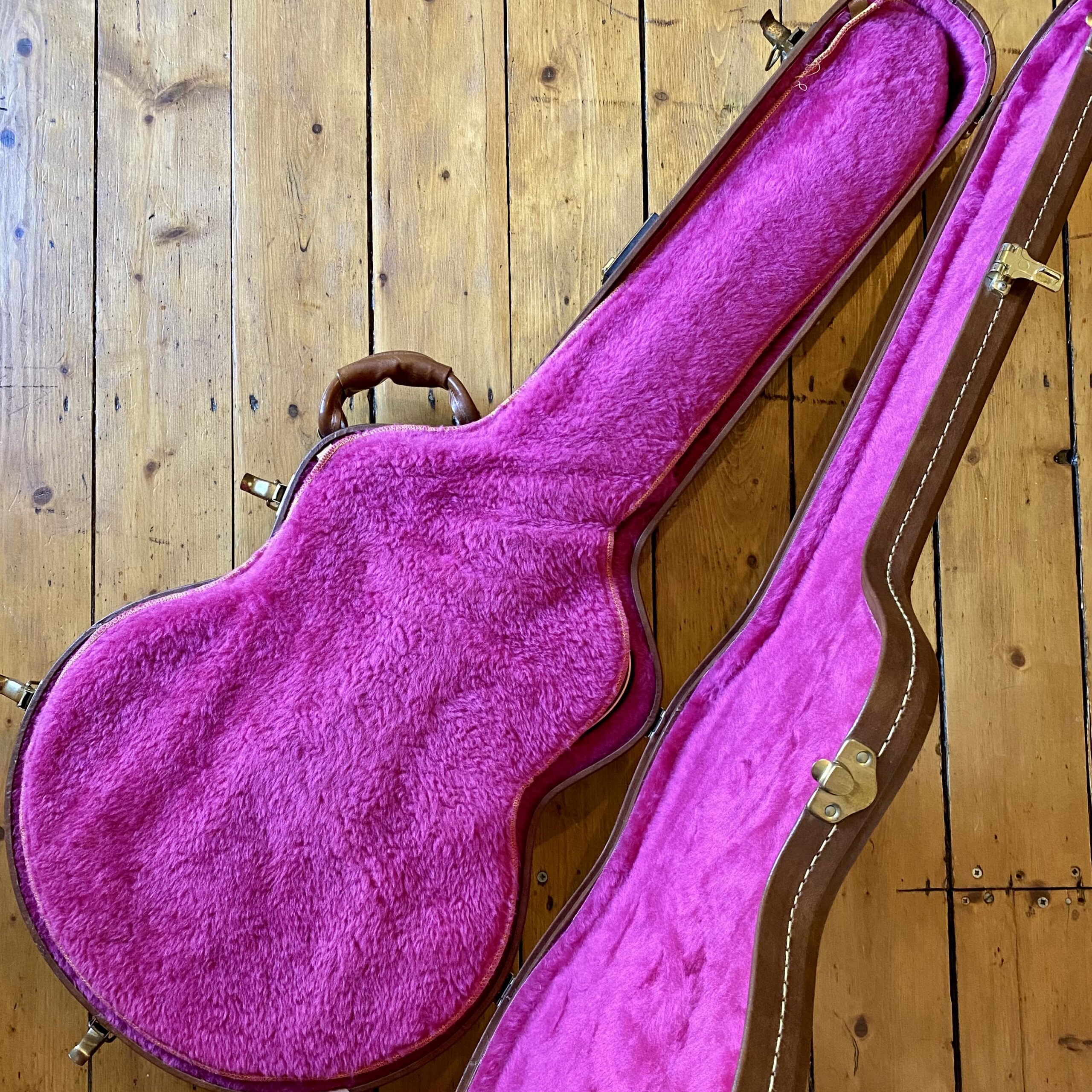 The guitar comes complete with its original Tan Gibson case with Pink Furry Shroud, original check card and receipt. The Case is functioning fine with some nice Patina, the latches have dulled over the years. The pictures tell the rest of the story.