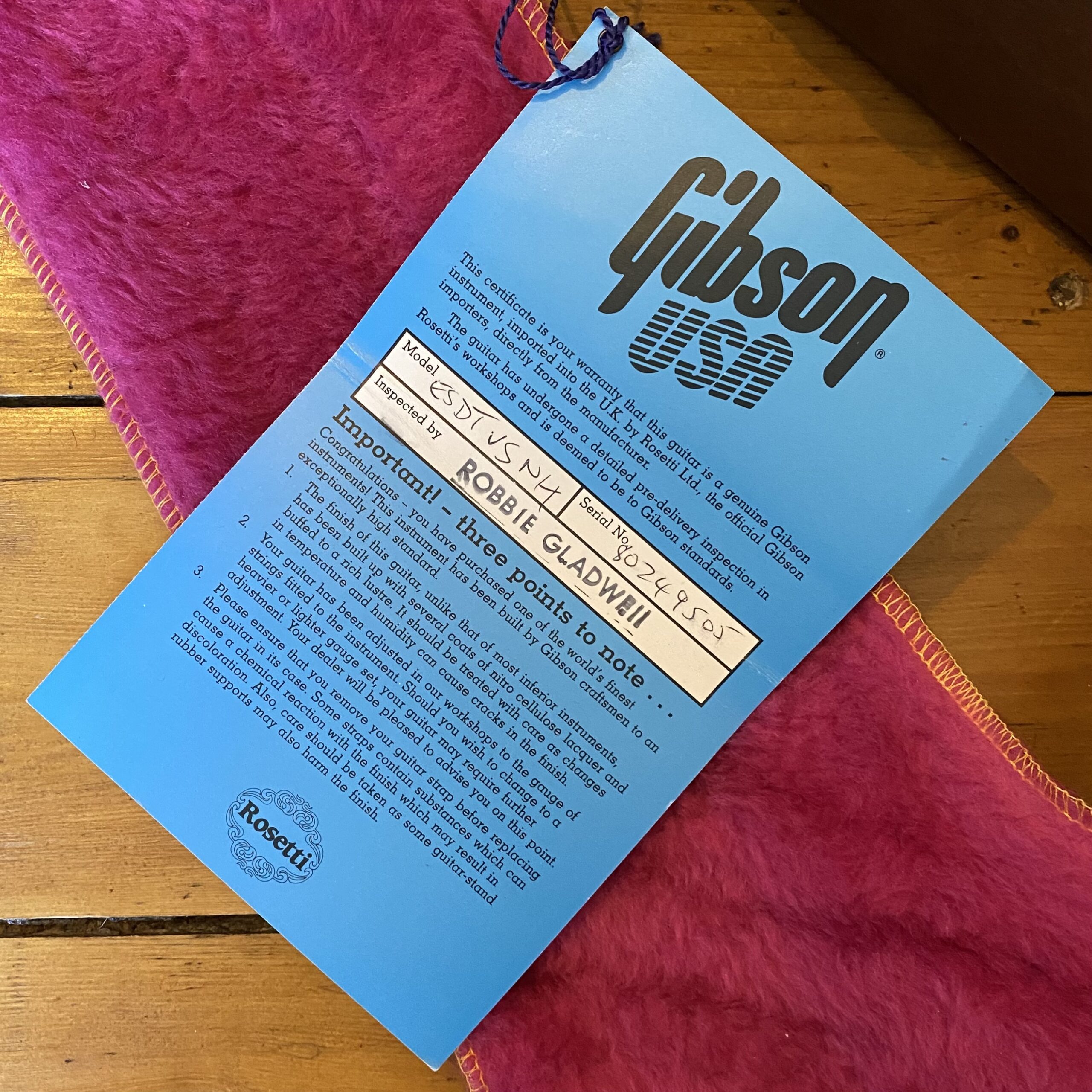 This is a rarely seen one owner late 1980’s ES-335 with rare Ebony fretboard. Yes Ebony! It is very unusual to come across an ES-335 with an Ebony fretboard on an ES-335 from the late 80’s, let alone see one for sale! The guitar is completely original and unmolested, just as it left Gibson’s Nashville factory back in 1989. The condition is excellent for its age all over – no significant knocks, chips, dings or dents, a really well looked after example in excellent condition with just some typical lacquer checking. There is a slightly deeper lacquer check near the pickguard (see photos) this is only visible in direct light. Obviously this is now a 35+ year old lightly used guitar so do expect some very minor playwear and superficial marks only adding to the vintage vibe.