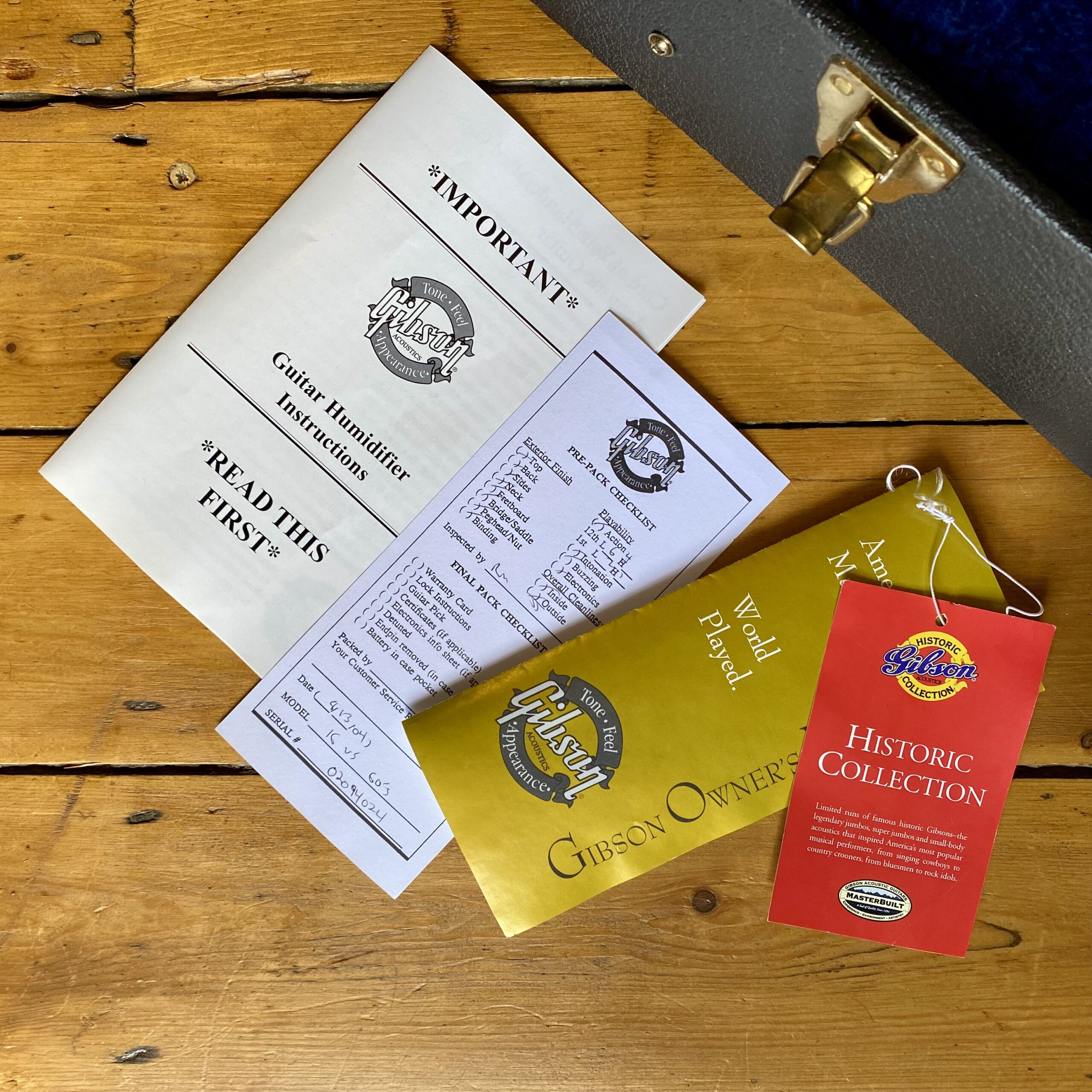 These guitars were exclusively Masterbuilt from the finest tonewoods at the Bozeman, Montana plant and were made in small numbers by Master Luthiers. As indiciated by the “Historic Collection” decal at the back of the headstock and included hangtag. The guitar is in perfect working order, complete with the original hardshell case and all case candy.