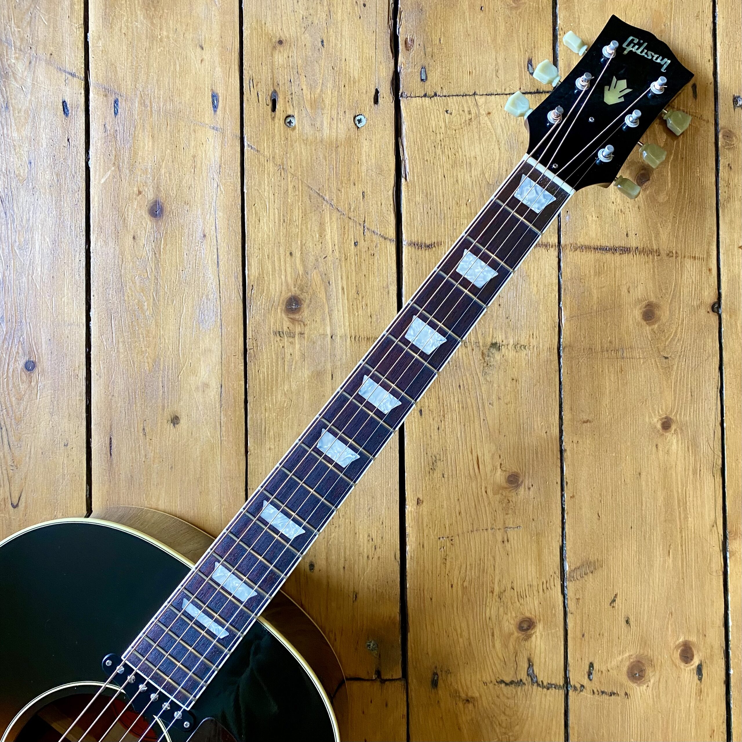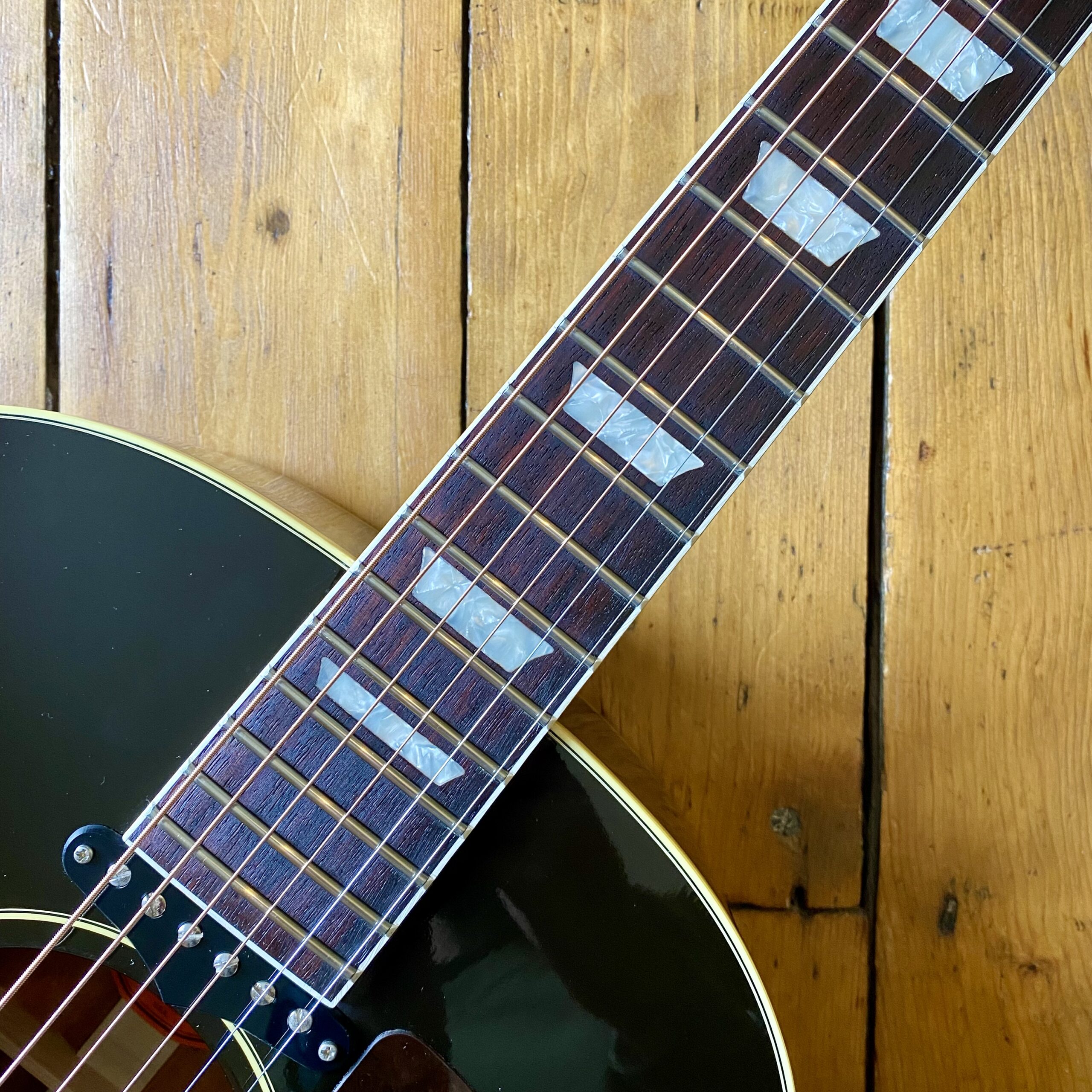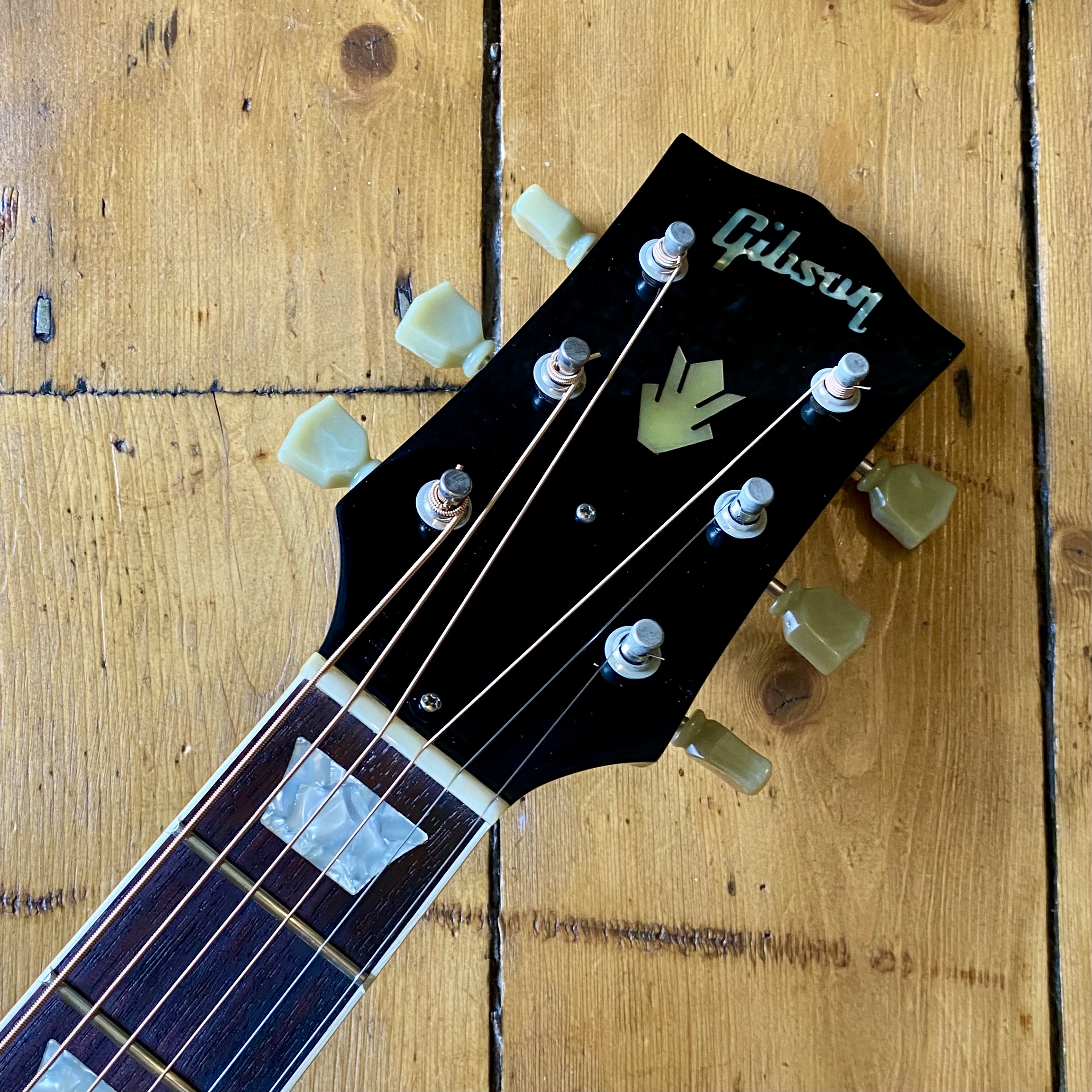 The J-160E is perhaps best known for its association with John Lennon, who used one extensively on recordings in The Beatles’ early years, although these guitars sound exceptional in their own right. This iteration of the J-160E platform is faithful to early ’60s spec, crafted by master luthiers at the Gibson acoustic factory in Bozeman, Montana. It features a ladder-braced solid Sitka spruce top, solid mahogany back and sides, and the stacked P-90 pickup mounted between the fretboard and sound-hole.