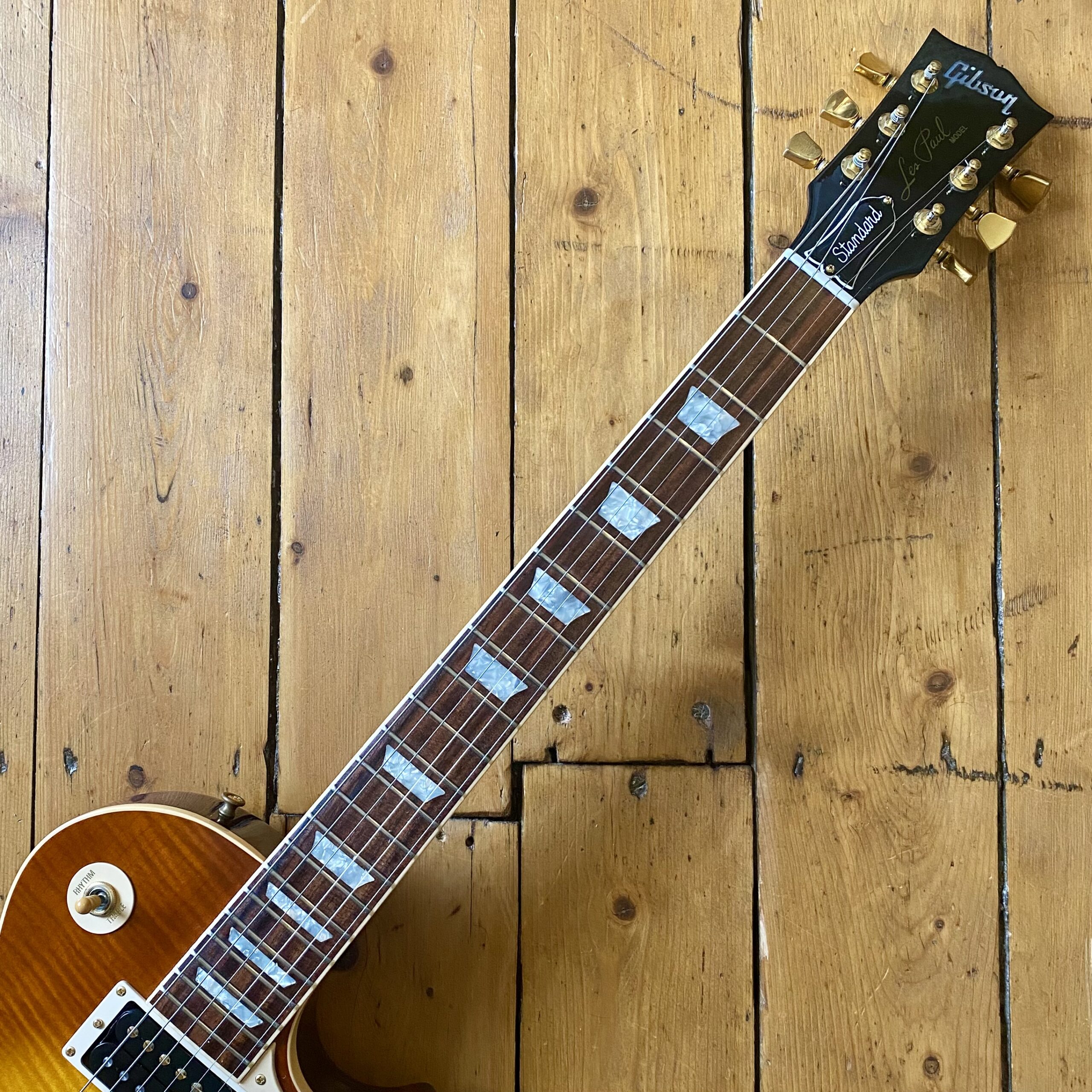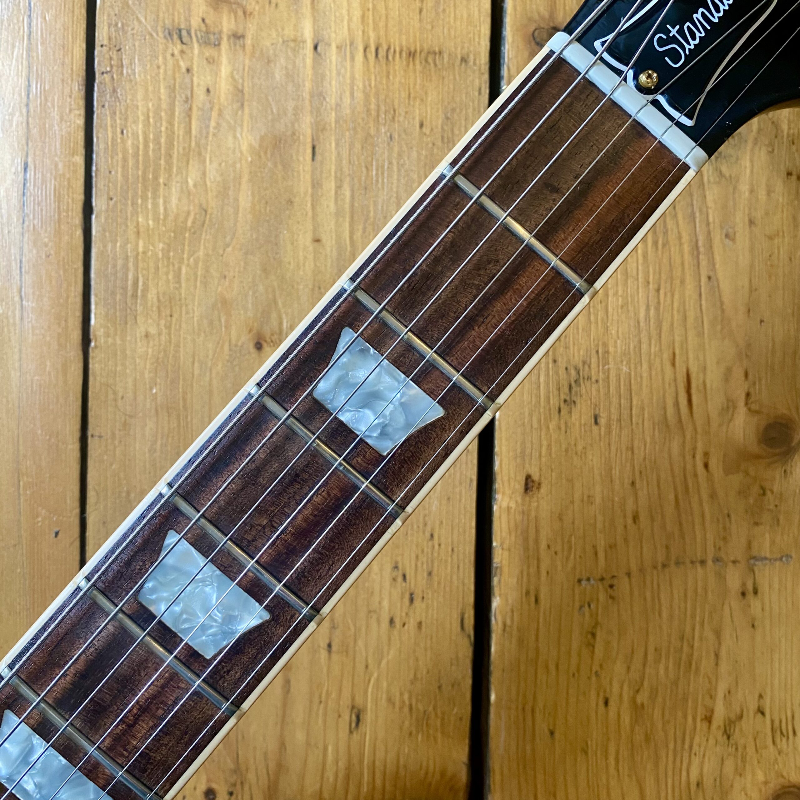 The guitar plays really well across the board. The signature ‘Page’ neck profile is comfortable, slim without being unnecessarily skinny. Frets are in excellent condition with no wear. Like wise the finish is excellent with no knocks dents or wear aside from the mentioned minor ding to the back of the guitar. The guitar sounds excellent, it of course excels at Page infused Rock and Roll but thanks to the switching system this is one versatile Les Paul. The switching in itself becomes very intuitive after little time.