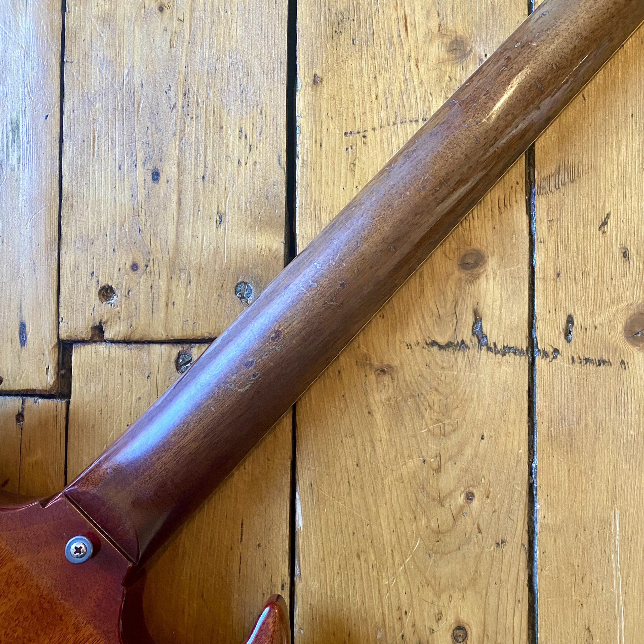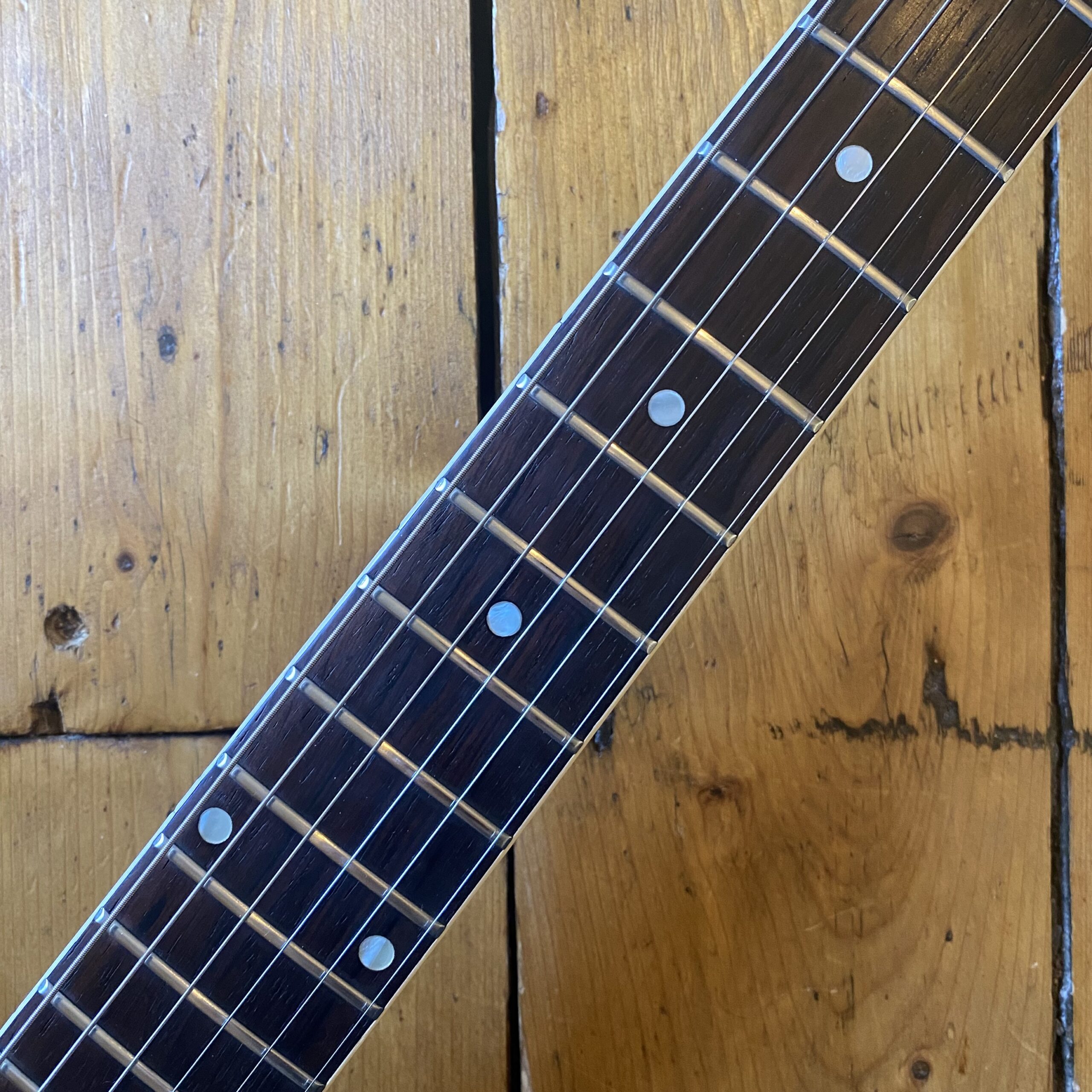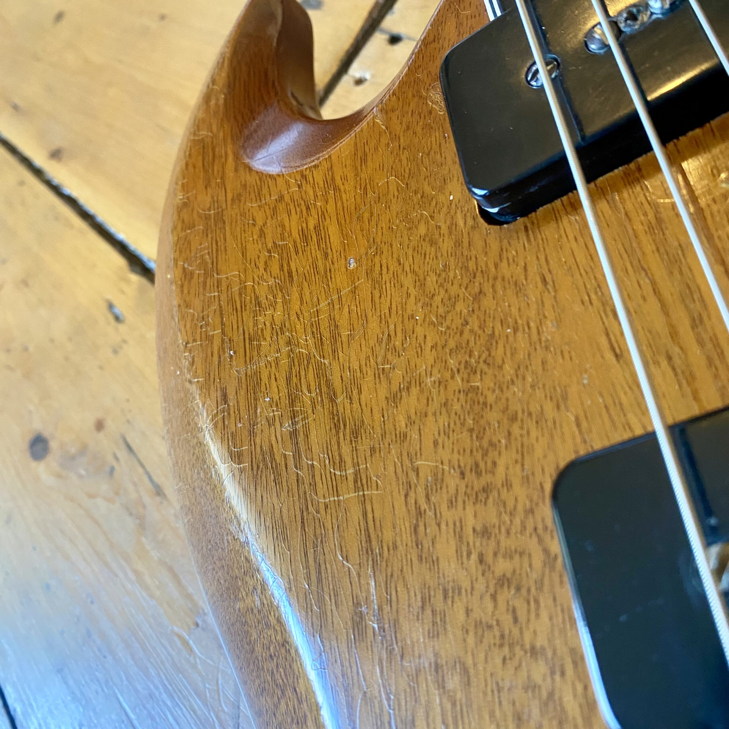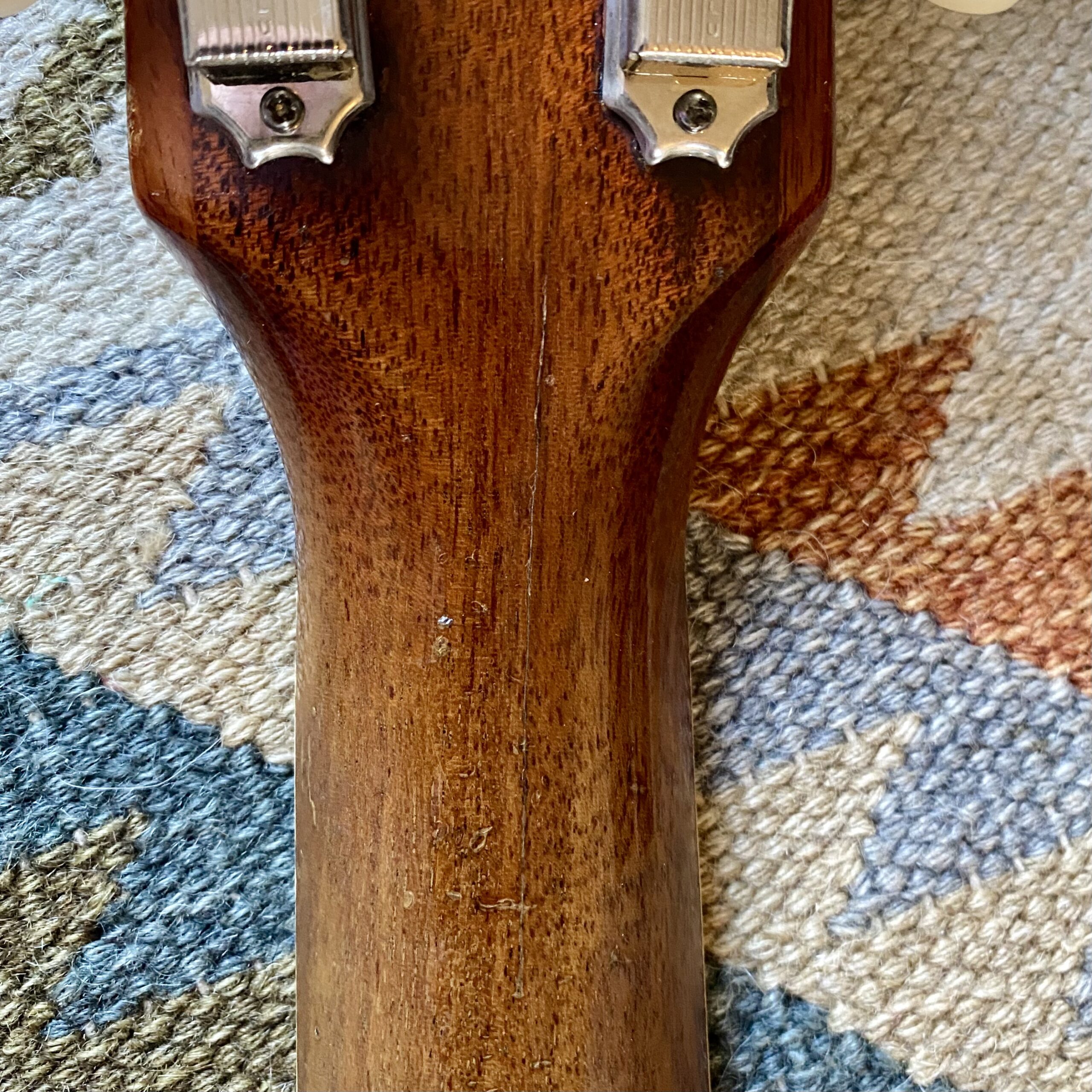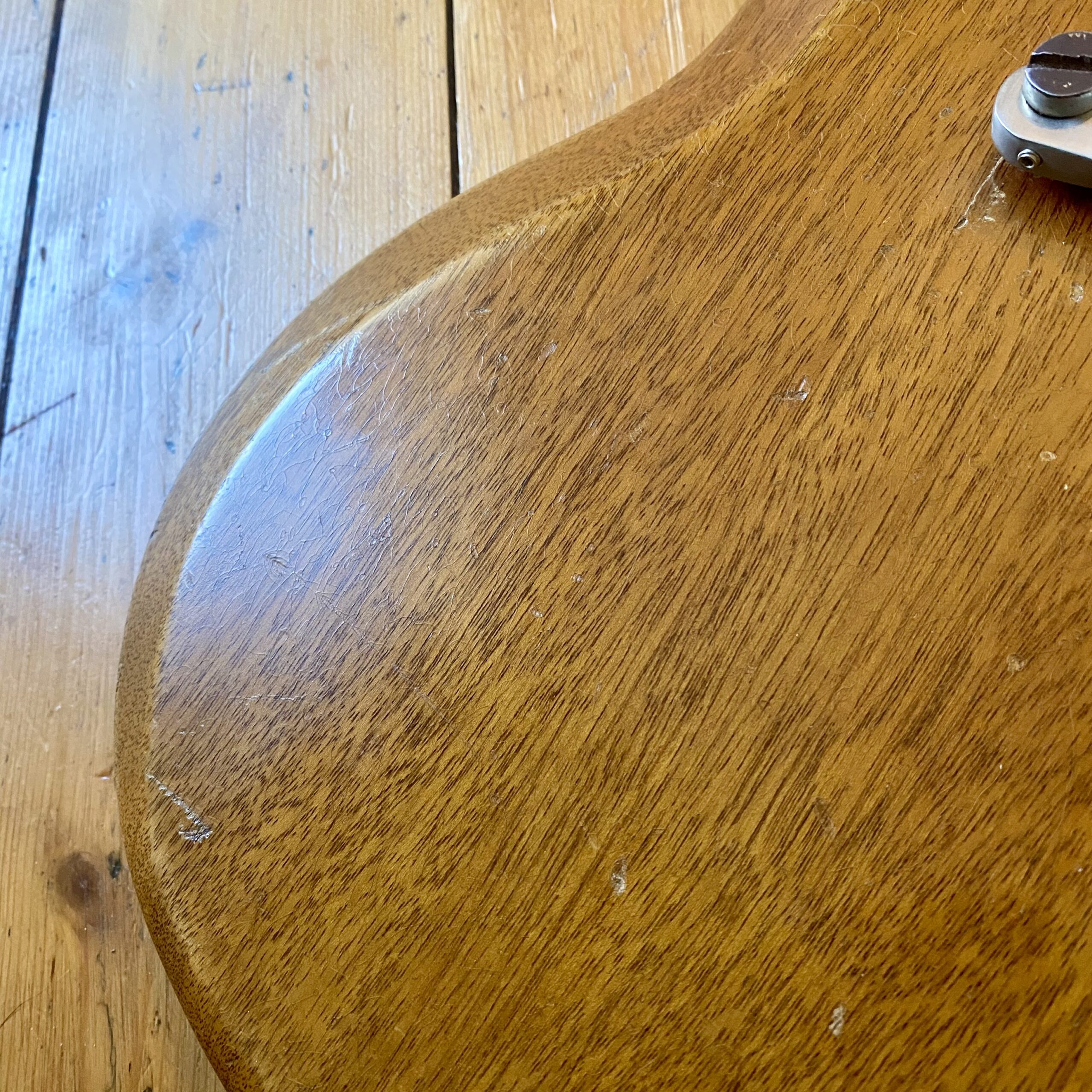 The guitar blacklights well and has never been repaired or refinished in any way. On close inspection there is a very minor crack in the neck where the truss rod has at some stage been overtightened. The finish is worn and original around this area. Therefore we can conclude – quite old damage. We have had the guitar inspected by two respected luthiers (The Guitar Repair Workshop & Brian Eastwood Guitars). Both have recommended leaving the guitar well alone and not repairing anything until truly necessary as the damage is very minor and deemed stable. As such the guitar is available at a great price!