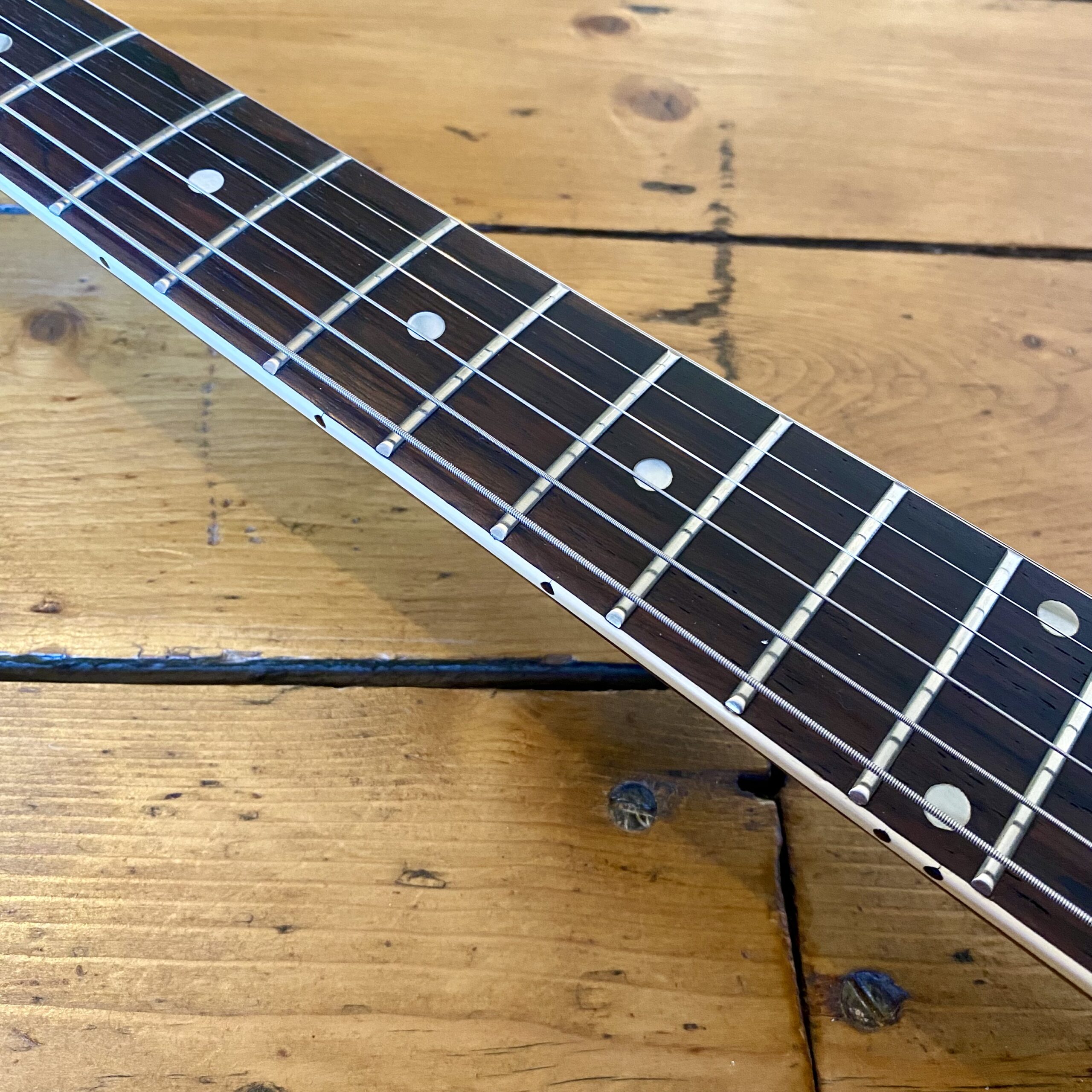 – Bound Brazilian Rosewood fretboard with dot-marker inlays